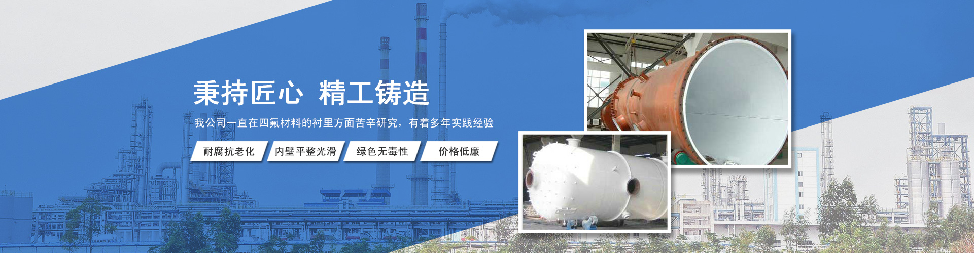 我公司專業(yè)生產(chǎn)防腐設(shè)備,主要產(chǎn)品有:鋼襯四氟、鋼襯四氟儲罐、鋼襯四氟管道、電子級襯四氟設(shè)備,鋼襯塑儲罐/反應(yīng)釜、緊襯四氟換熱器、鋼襯塑管道、鋼襯四氟攪拌槳、鋼襯塑攪拌槳等等。產(chǎn)品可廣泛應(yīng)用于化工、氯堿、海水淡化、印染、顏料、儲運(yùn)、電廠、稀土、冶金、電子、環(huán)保、制藥、釀造等行業(yè)...